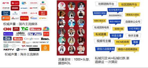 全域引爆,閉環(huán)運(yùn)營(yíng)。整合350+海內(nèi)外主流媒體、行業(yè)媒體、興趣電商資源,采用“權(quán)威聲量+流量裂變+產(chǎn)業(yè)深耕”營(yíng)銷策略,構(gòu)建“權(quán)威背書(shū)-全域滲透-爆品孵化-私域沉淀-終端裂變”的社交興趣電商完整閉環(huán)。