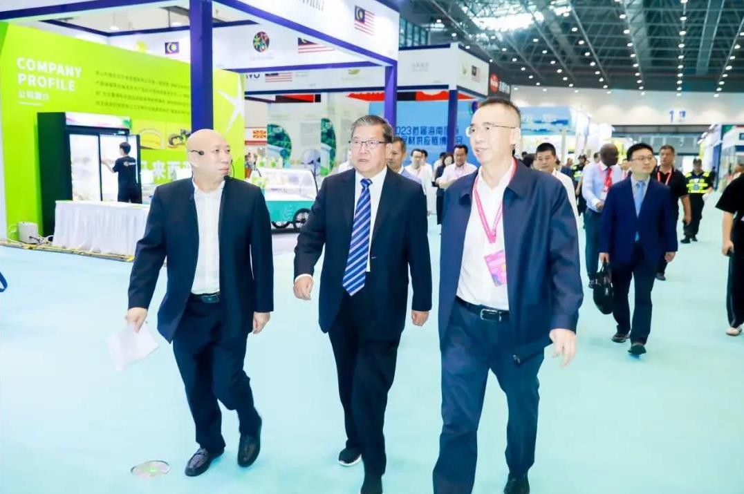 原國家外經貿部副部長、中國復關及入世首席談判代表、現任全球CEO發(fā)展大會聯合主席、中國與全球化智庫(CCG)主席龍永圖,海南省人大常委會原副主任、省慈善總會會長陸志遠,??谑腥嗣裾h組成員、副市長黃舸,海南省工業(yè)和信息化廳黨組成員、總工程師黃家林,原海南省食品藥品監(jiān)督管理局巡視員、海南餐飲服務管理協(xié)會會長許亞川,海南南國集團董事長劉漢惜等領導嘉賓一行在海南省食品生產與流通協(xié)會執(zhí)行副會長兼秘書長唐潔春陪同下,于10月12日上午參觀2023首屆海南國際熱帶食材供應鏈博覽會,到各個展館現場了解參展情況,并與展商親切交流,詢問銷售等情況