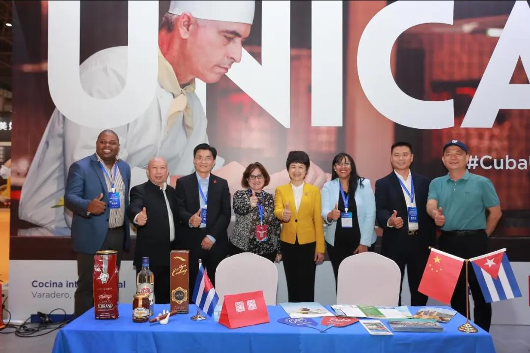 古巴共和國駐廣州總領事館總領事丹尼思女士DenisseLlamos Infante(右三),海南省貿促會副會長林春紅(右四),原海南省食品藥品監(jiān)督管理局巡視員、海南省餐飲服務管理協(xié)會會長許亞川(左三),海南省旅游餐飲協(xié)會常務副會長兼秘書長唐潔春(左二)等領導與企業(yè)嘉賓合影留念海南國際熱帶食材供應鏈博覽會團隊階段成果
